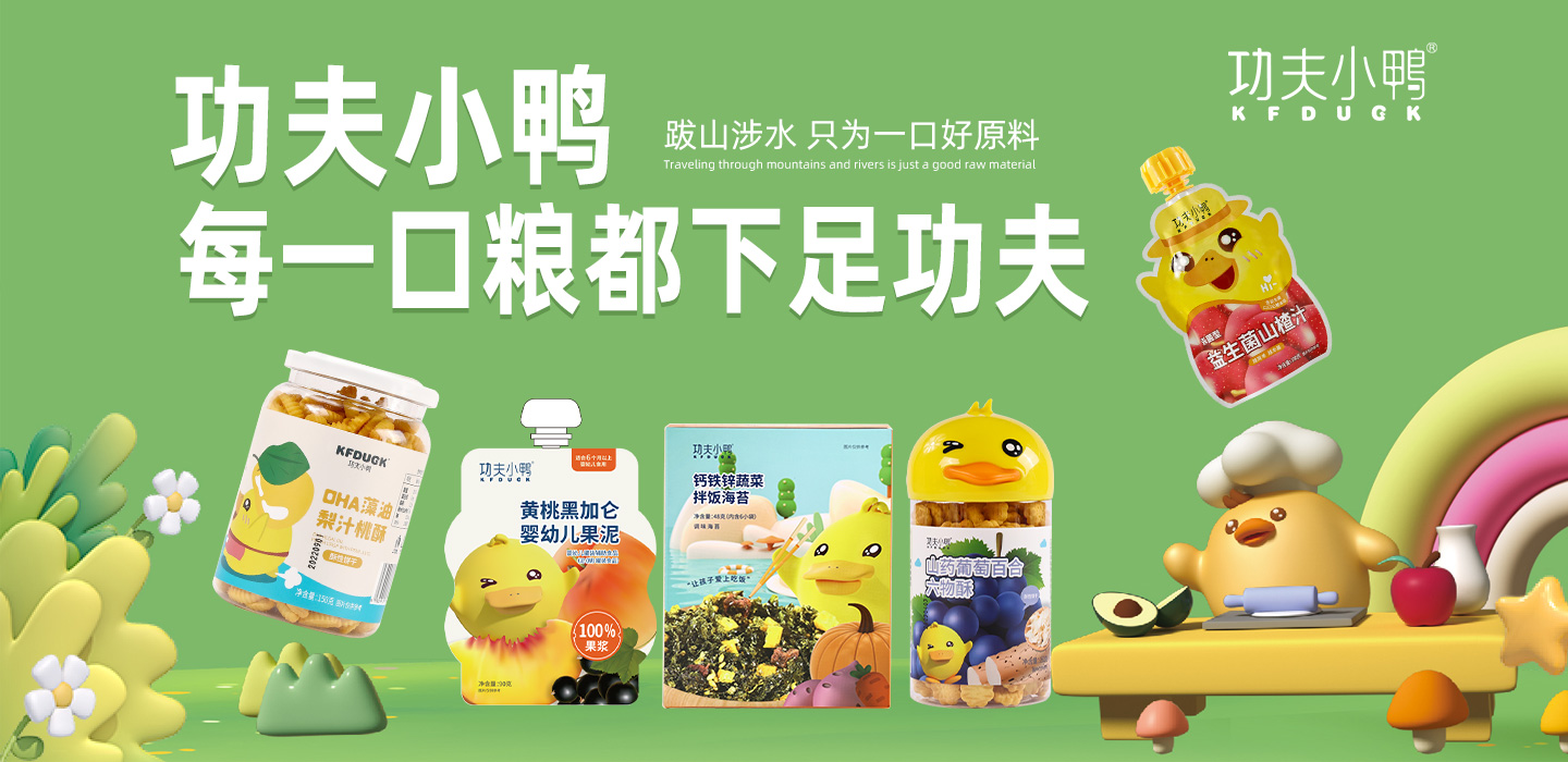 品牌名稱:功夫小鴨 主營產(chǎn)品:功夫小鴨嬰兒輔食 品牌特色:品種豐富 營養(yǎng)美味