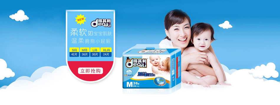 品牌名稱:得其利 主營(yíng)產(chǎn)品:得其利嬰幼兒紙尿褲 品牌特色:柔軟 親膚 透氣