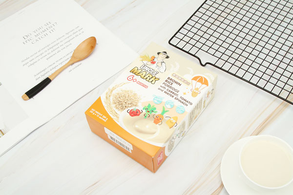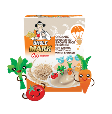 成分:茉莉香糙米,茉莉香米、胡蘿卜,西紅柿,空心菜,鈣,鐵, 鋅,維生素B1,維生素A,維生素D