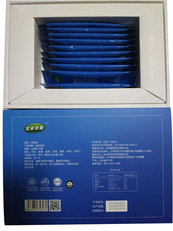 您所在位置:首頁>臨沂昊來祥商貿有限公司>昊來草源百合粉30g