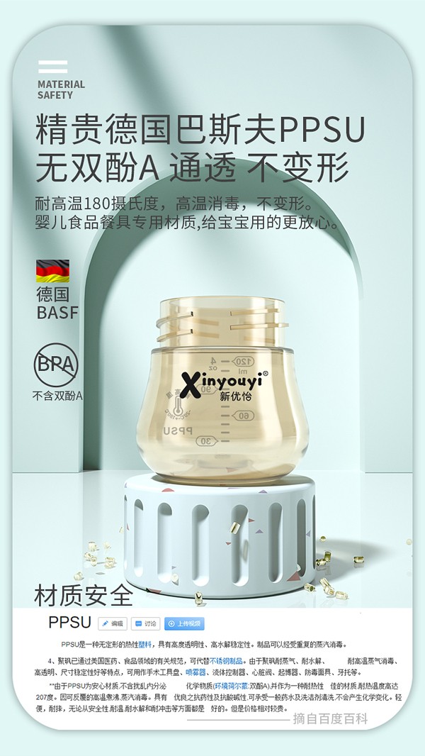 • 新優(yōu)怡德國PPSU抗摔防脹氣奶瓶 180ml