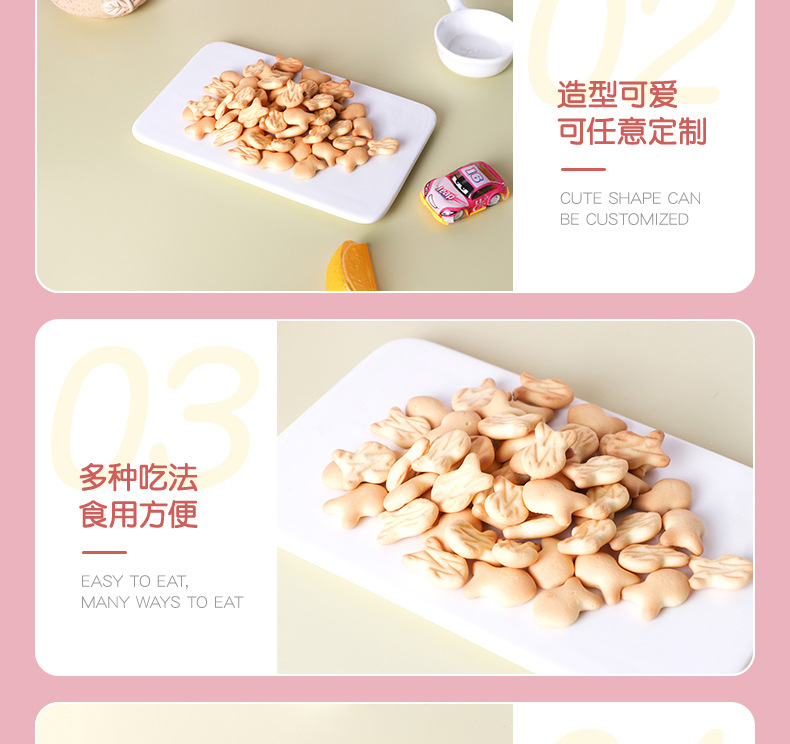 貼牌定制小魚造型餅干500g兒童食品廠家批發(fā)OEM牛奶味韌性餅干