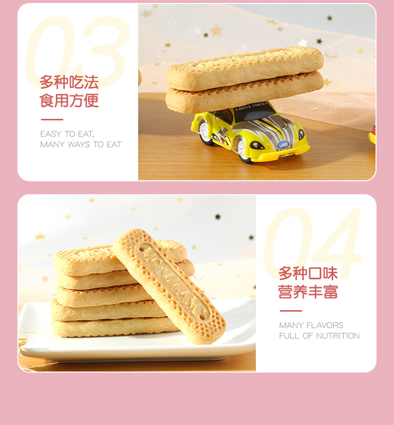 OEM貼牌代加工兒童酥性長條餅干500g logo定制牛奶芽芽棒谷物餅干