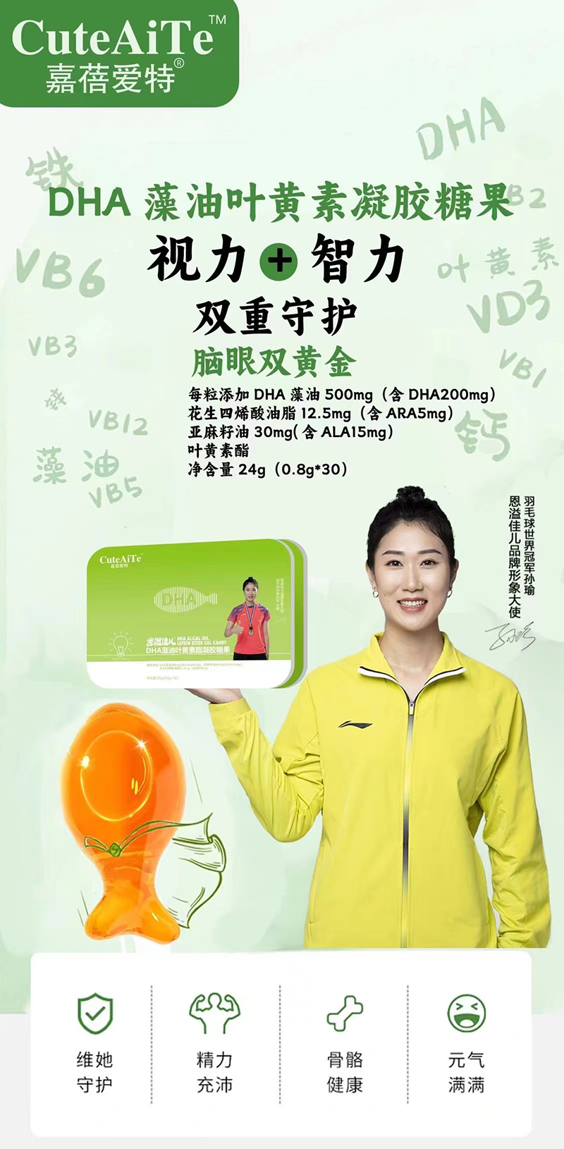 嘉蓓愛特恩溢佳兒DHA藻油葉黃素酯凝膠糖果