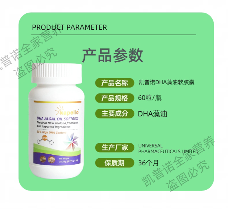每粒含有約150毫克DHA,DHA藻油的日攝入量≤300mg/天
