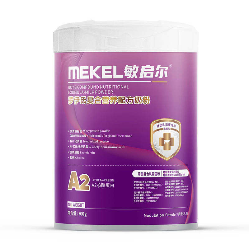 敏啟爾羅伊氏復(fù)合營(yíng)養(yǎng)配方奶粉,添加水解配方,特別添加乳清蛋白粉(富含乳脂肪球膜)、異構(gòu)化乳糖、N-乙酰神經(jīng)氨酸、乳鐵蛋白、膽堿、A2-β酪蛋白,添加復(fù)合乳酸菌粉,特別添加專(zhuān)利菌株,特別添加短雙歧桿菌M-16V,多種微量元素添加,科學(xué)營(yíng)養(yǎng),給孩子剛剛好。