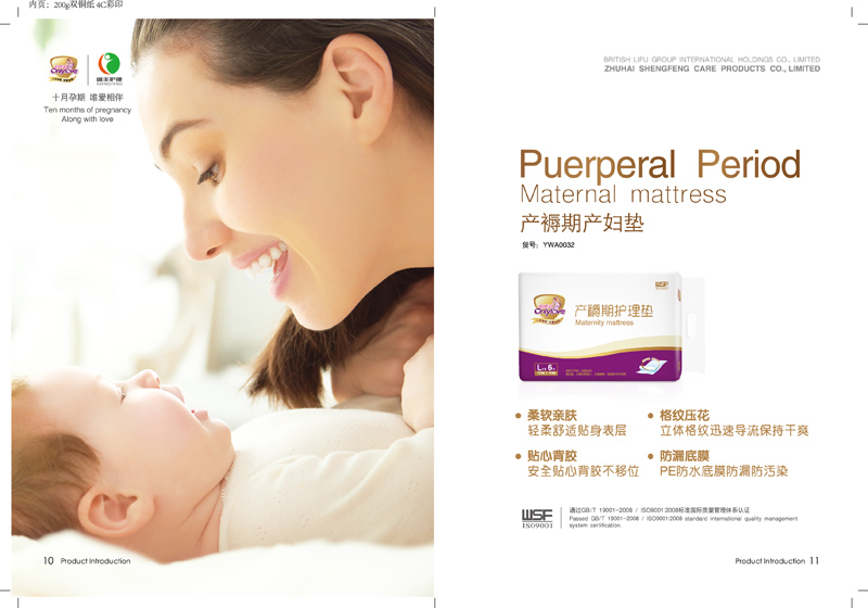 目前的產(chǎn)品有:待產(chǎn)護理用品、產(chǎn)婦巾、護理墊、防溢乳墊、母乳保鮮袋、一次性紙內(nèi)褲、嬰兒護臍貼、嬰兒護臍帶、收腹帶等