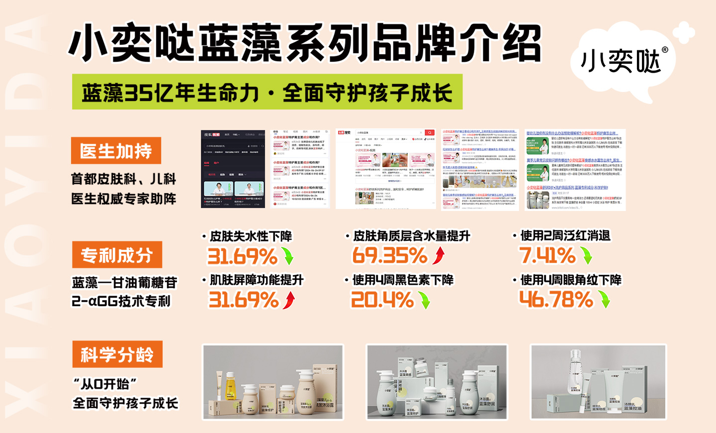 “小奕噠”是武漢達(dá)兒文生物科技有限公司旗下定位于嬰童保健與護(hù)理,擁有完全知識(shí)產(chǎn)權(quán)的品牌,該品牌產(chǎn)品由武漢達(dá)爾文設(shè)計(jì),“小奕噠”系列產(chǎn)品以純天然植物精華為產(chǎn)品原料,充分利用各種草本植物的作用機(jī)理科學(xué)組合配方,并發(fā)揮配方中各草本植物最大功效特點(diǎn),以先進(jìn)的提取工藝作為原料品質(zhì)保障,結(jié)合現(xiàn)代尖端設(shè)備和先進(jìn)的生產(chǎn)工藝、十萬(wàn)級(jí)無(wú)菌生產(chǎn)環(huán)境及完善的GMP體系作為產(chǎn)品的質(zhì)量保證。