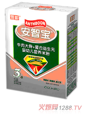 雅能安智寶,央視上榜品牌 雅能安智寶金裝嬰兒配方奶粉是適用于1-3歲幼兒食用的配方奶粉。及母乳中含有的活性免疫球蛋白、DHA、ARA、核苷酸、;撬、鐵質等重要物質能提高嬰幼兒免疫抗病能力,幫助快速成長的嬰幼兒大腦,視網(wǎng)膜及機體健康發(fā)育。