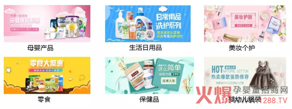 孕嬰童用品:嬰幼兒洗護用品、尿褲濕巾、奶瓶奶嘴吸奶器、孕期產(chǎn)后用品、護膚品等;