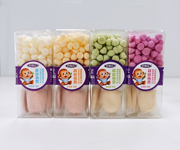 倍思貝雙拼萌豆系列,甄選優(yōu)質(zhì)原料,采用先進烘焙工藝制作,特別融合酸奶、果蔬等食材,碰撞出別樣美味,口水餅+溶豆雙拼組合,同時享受兩種美味,樂趣無窮。四種組合口味,分別為酸奶味口水餅+獼猴桃味溶豆、火龍果味口水餅+酸奶味溶豆、火龍果味口水餅+香橙味溶豆、酸奶味口水餅+火龍果味溶豆,巧妙雙拼,美味享受,而且無多余添加,易消化,無負擔(dān),更健康。