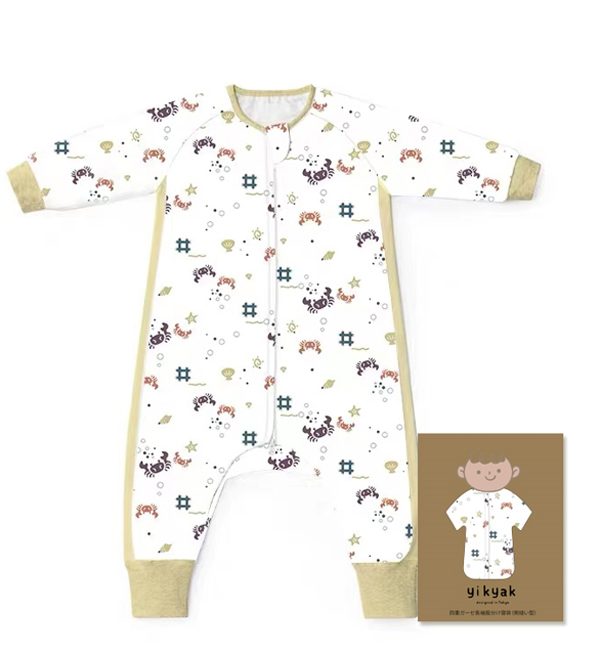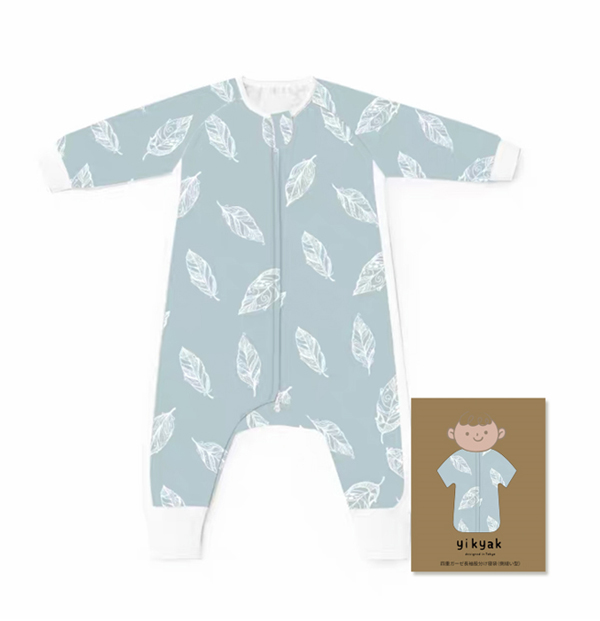 yikyak四層紗布長(zhǎng)袖分腿睡袋(側(cè)拼款) 灰羽產(chǎn)品展示