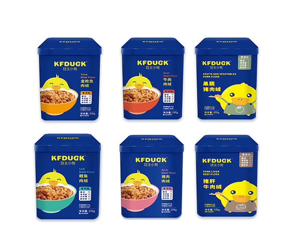 功夫小鴨肉絨系列,有豬肉絨、金槍魚(yú)肉絨、牛肉絨、鱈魚(yú)肉絨等多個(gè)單品,均選優(yōu)質(zhì)食材制作,營(yíng)養(yǎng)美味,健康不添加。