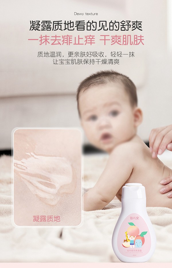 哪款寶寶護膚品在終端更好賣呢?哪個牌子的嬰童護膚品更受消費者信賴呢?火爆孕嬰童網(wǎng)小編今日給您推薦這款達兒文桃葉精華爽身露值得選擇。配方安全,成分放心,一上市便獲得消費者的關(guān)注,在了解并使用過后,媽媽圈反饋皆是好評,妥妥的母嬰店“人氣款”。