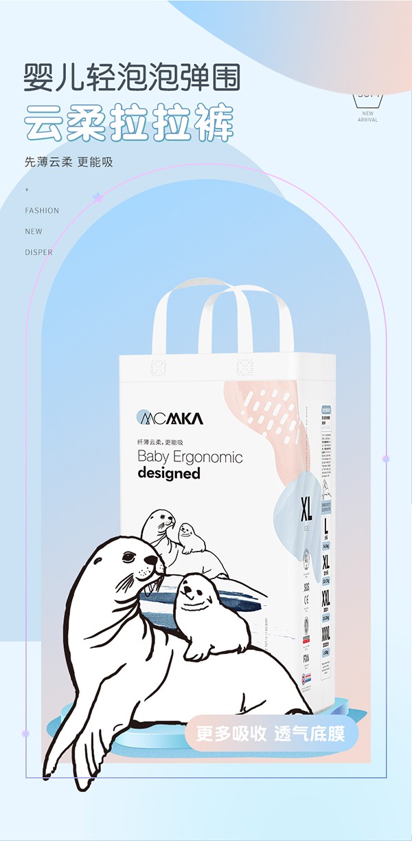 麥卡米卡嬰兒空氣感U芯紙尿褲,醫(yī)護級紙尿褲,多國檢測認證。羽毛般輕薄,薄至0.1cm,無感般穿著,透氣舒適,自有呼吸不悶熱;臺灣進口面層,梅花打孔設計,先進單層水刺布技術,更輕薄,更柔軟親膚,讓寶寶的小屁屁更干爽,更舒服。日本進口芯體,不易起坨斷層,自主獨特吸水系統(tǒng),海量瞬吸;全方位立體打孔,底膜25000個透氣孔,迅速散熱排濕,甄護寶寶嬌嫩肌膚,遠離紅屁屁;羽柔細膩,不易移位,包裹更好;雙層防側(cè)漏,安睡一整晚。