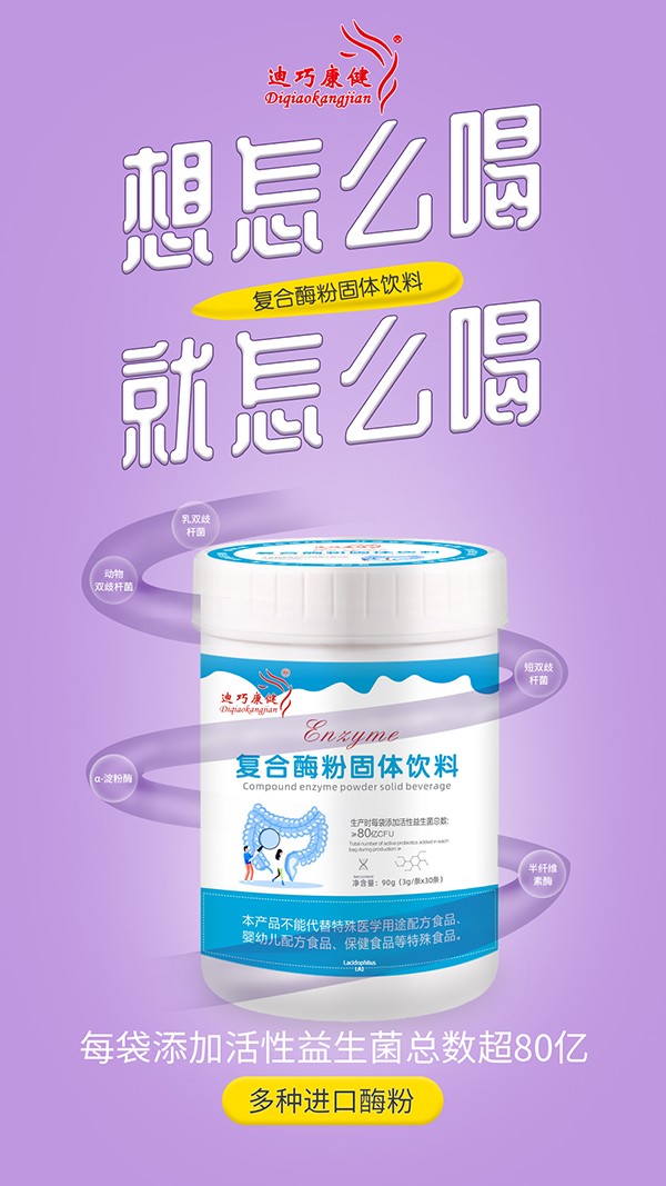 迪巧康健復(fù)合酶粉固體飲料,嚴(yán)選多種天然原料,源頭把控,品質(zhì)保證!富含多種優(yōu)質(zhì)菌種,如乳雙歧桿菌、動物雙歧桿菌、短雙歧桿菌等等,生產(chǎn)時每袋添加活性益生菌總數(shù)≥80億cfu,同時特別添加α-淀粉酶、半纖維素酶等等,配比科學(xué),營養(yǎng)均衡,更以嚴(yán)格工藝加工而成,層層監(jiān)督檢測,品質(zhì)過硬,易溶解、易消化、好吸收,給力護成長!