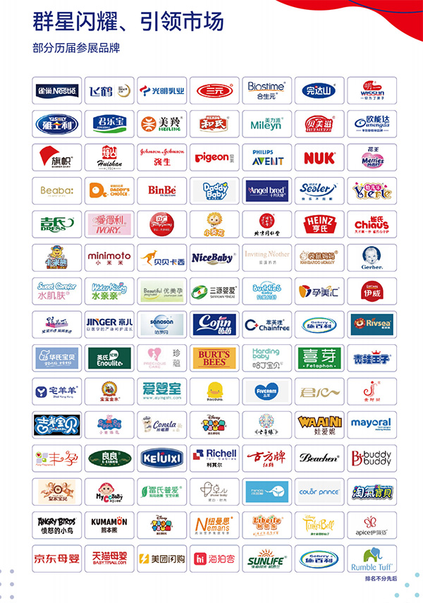 支持單位:中國優(yōu)生優(yōu)育協(xié)會、中華醫(yī)學會、中國貿(mào)促會商業(yè)行業(yè)分會、全國婦聯(lián)辦公廳、中國婦女兒童活動中心、中國關(guān)工委健體中心學雷鋒聯(lián)盟、全國衛(wèi)生產(chǎn)業(yè)企業(yè)管理協(xié)會兒童健康產(chǎn)業(yè)分會、中國國際展覽中心集團、《中國會展》雜志社、廣東省孕嬰童用品協(xié)會、云南省孕嬰童用品協(xié)會、河南省孕嬰童用品行業(yè)協(xié)會、山東省孕嬰童用品商會、海南省孕嬰童行業(yè)協(xié)會、貴州省兒童用品商會、廣西玩具和嬰童用品協(xié)會